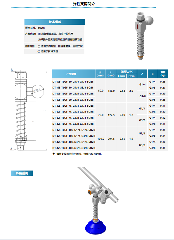 产品功能: ① 具备弹簧减震、高度补偿作用 ②弹簧外置无行程限位且产品有防转功能