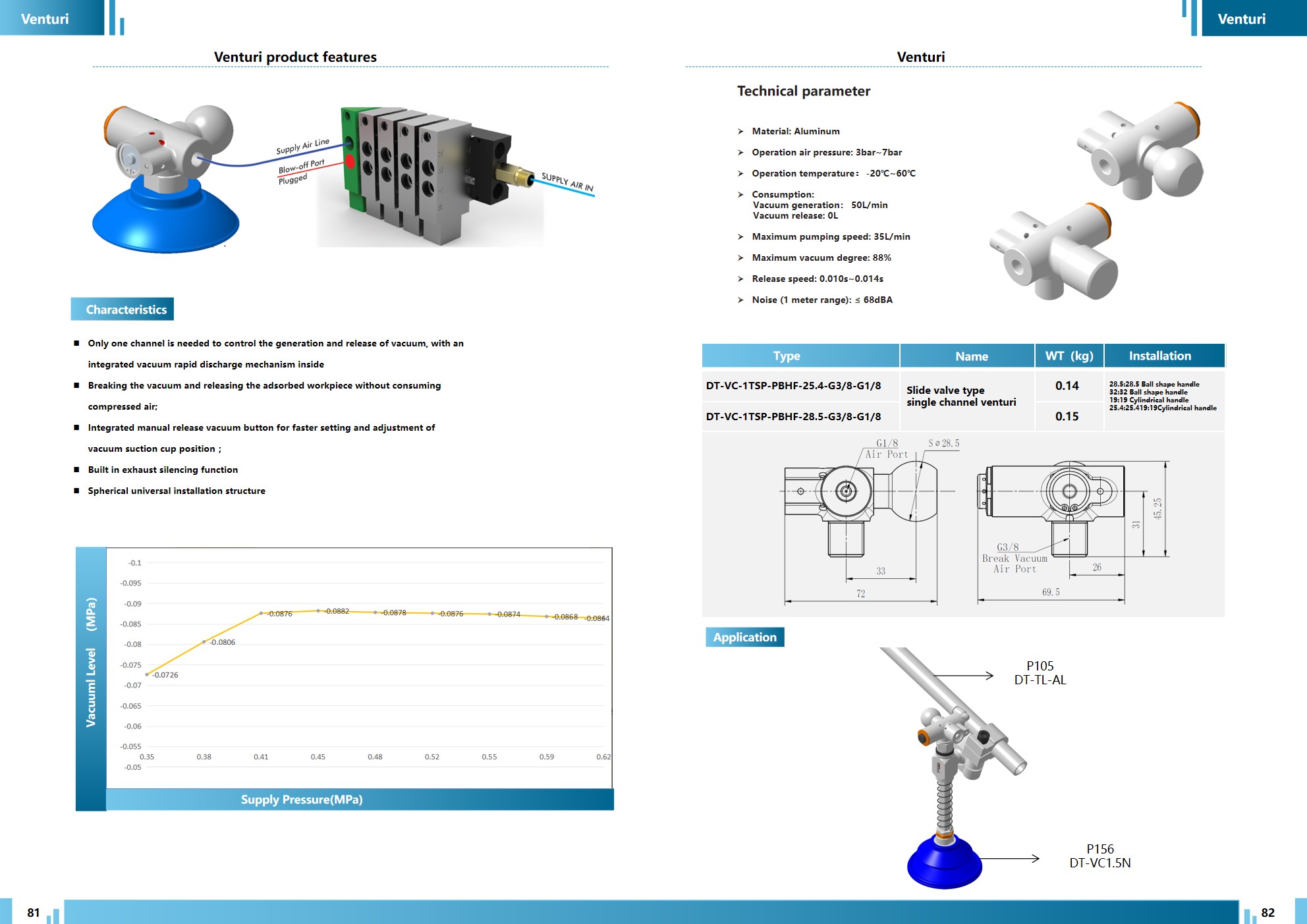 • Air Consumption: ① Vacuum Generation: 50 L/min; ② Vacuum Release: 0 L