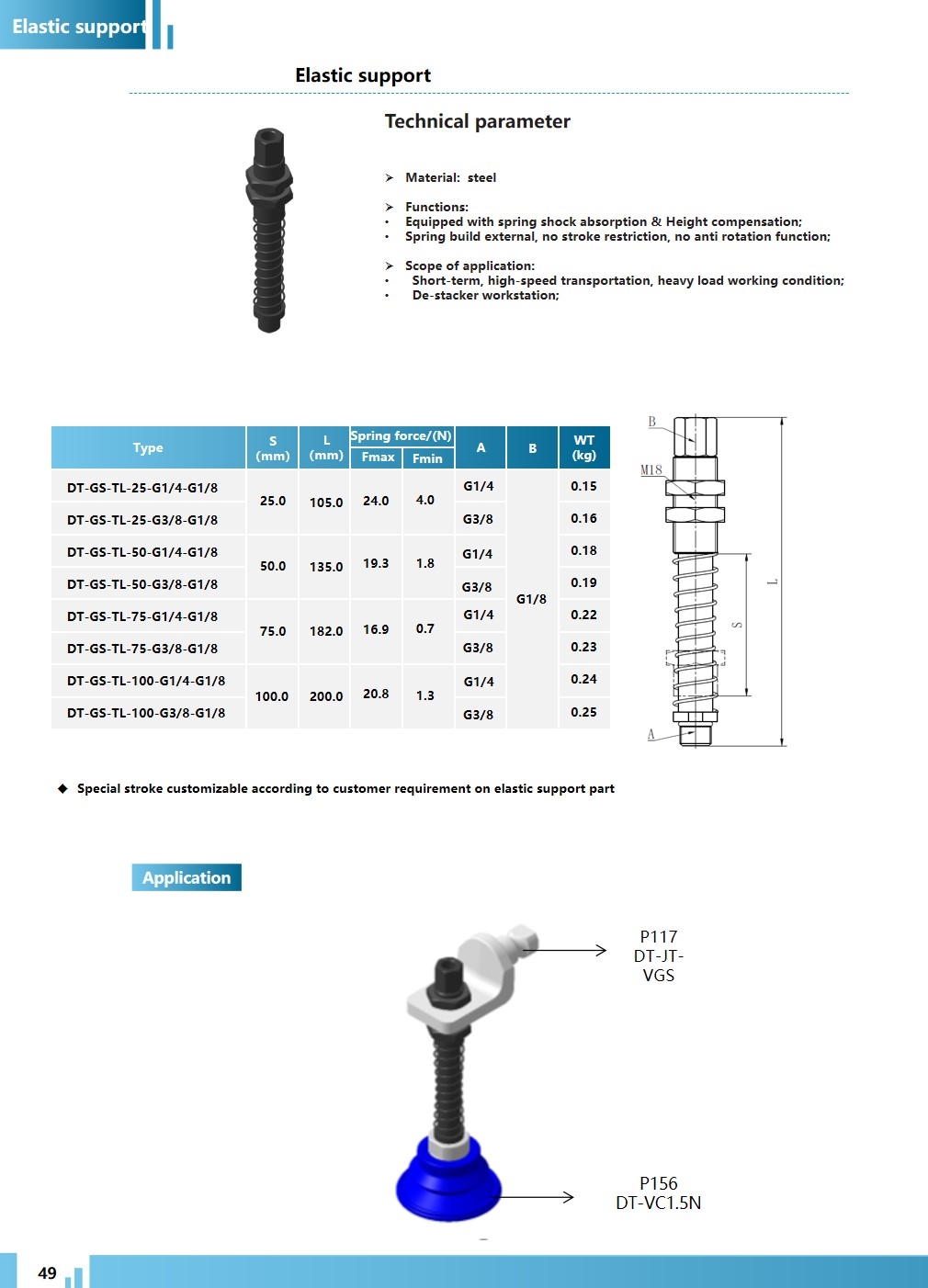 • Product Functions: ① Features spring shock absorption and height compensation; ② Has an external spring with no stroke limit, and the product does not have anti-rotation functionality