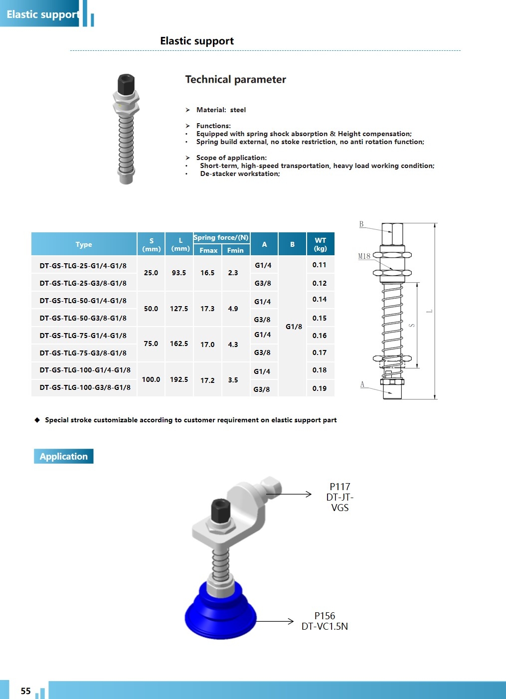 - Product Functions: ① Features spring shock absorption and height compensation; ② Has an external spring with no stroke limit, and the product does not have anti-rotation functionality