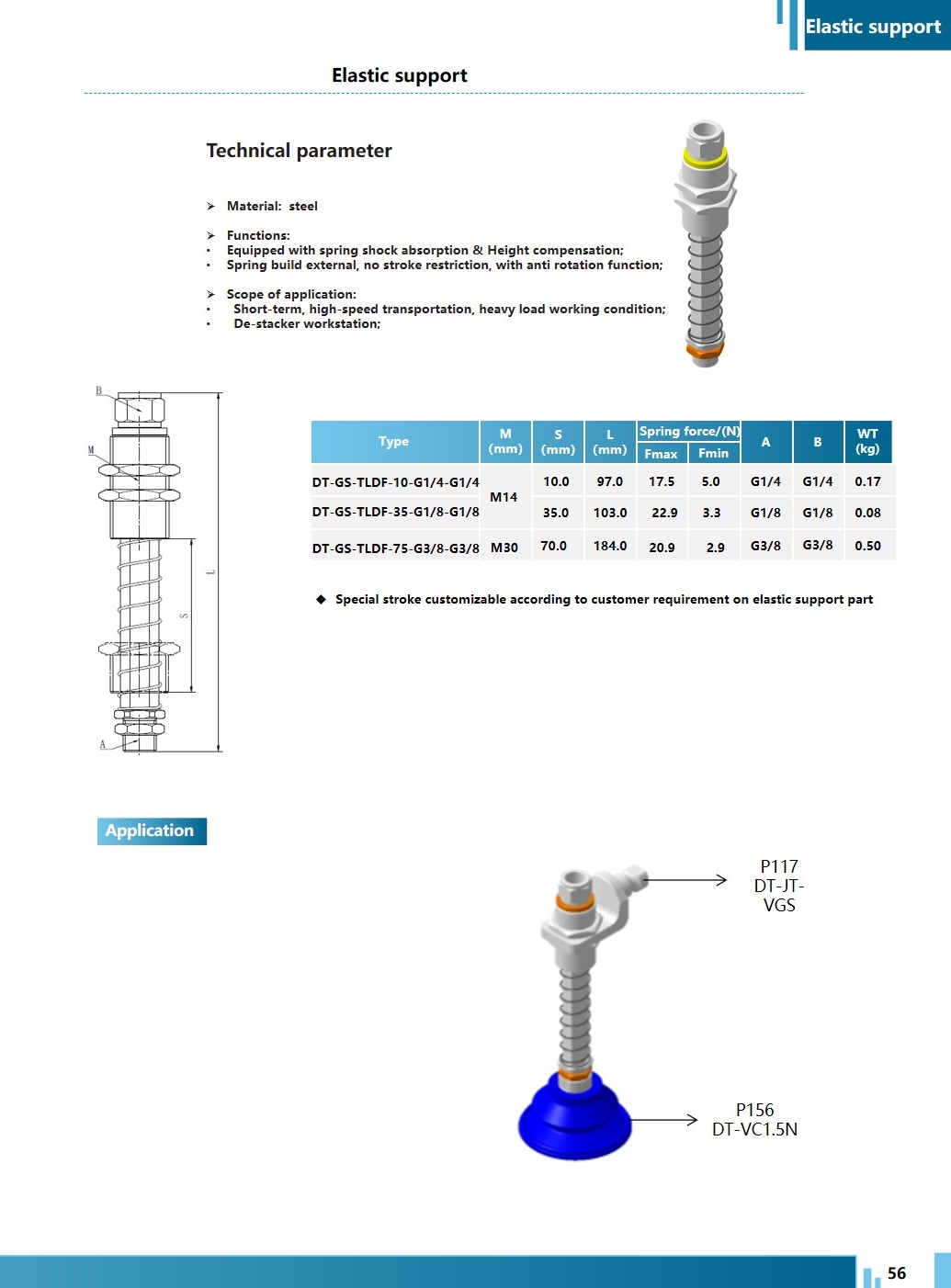 - Product Functions: ① Features spring shock absorption and height compensation; ② Has an external spring with no stroke limit, and the product is equipped with anti-rotation functionality